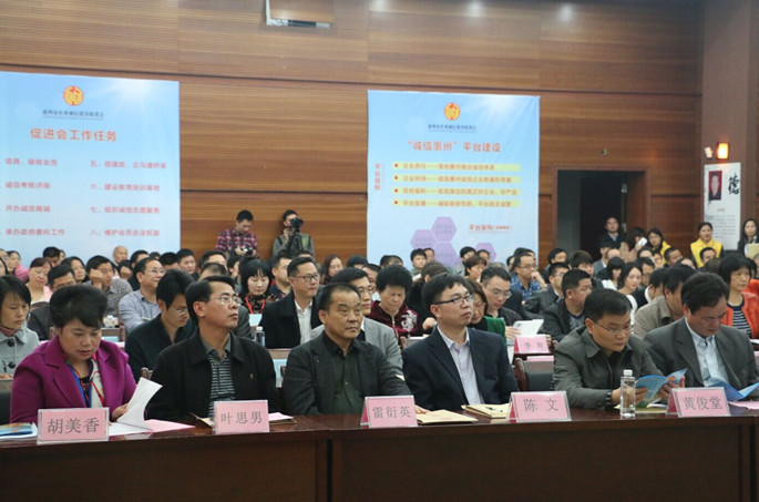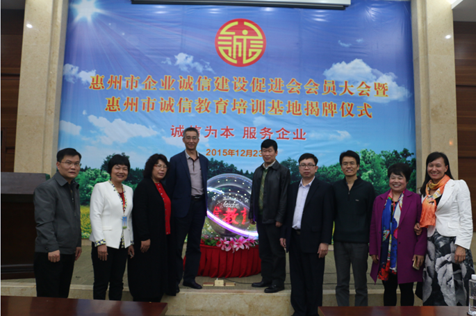 2015年12月23日下午,惠州市企业诚信建设促进会第一次会员大会暨惠州市诚信教育培训基地揭牌仪式在惠州博物馆学术报告厅举行,促进会会员在大会上进行诚信宣誓。当天,促进会还获得了省信用管理师协会惠州分会的正式授牌。